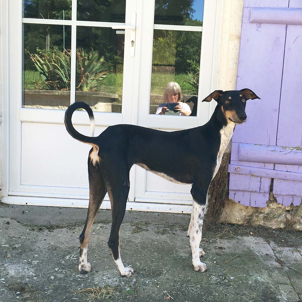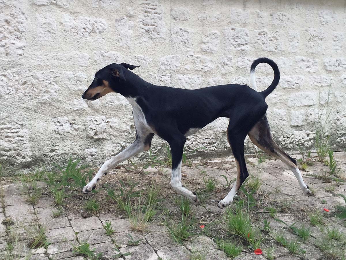 C'est une chienne lévrier importée du pays d'origine des Azawakhs, aux origine génétiques identiques aux Azawakhs, mais elle ne possède pas d'inscription dans un livre d'origine et n'a donc pas le droit de se faire appeler "Azawakh" ...
